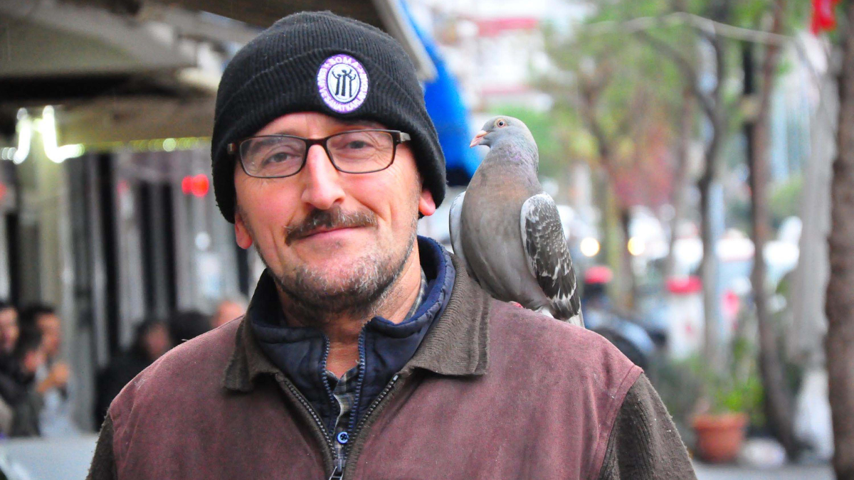 Kuşçu, kafeste beslediği güvercinlerden kendisine alışan ve omzundan inmeyene 'Osman' ismini verdi.