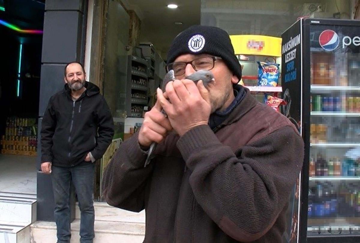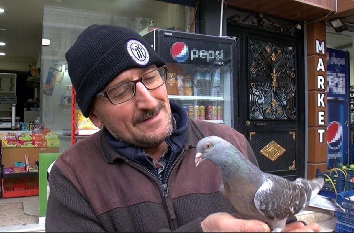 Manisa'nın Soma ilçesinde bakkal dükkanı işleten Bülent Kuşçu (47), 1,5 yıl önce annelerinin öldüğü 3 yavru güvercini sahiplendi.