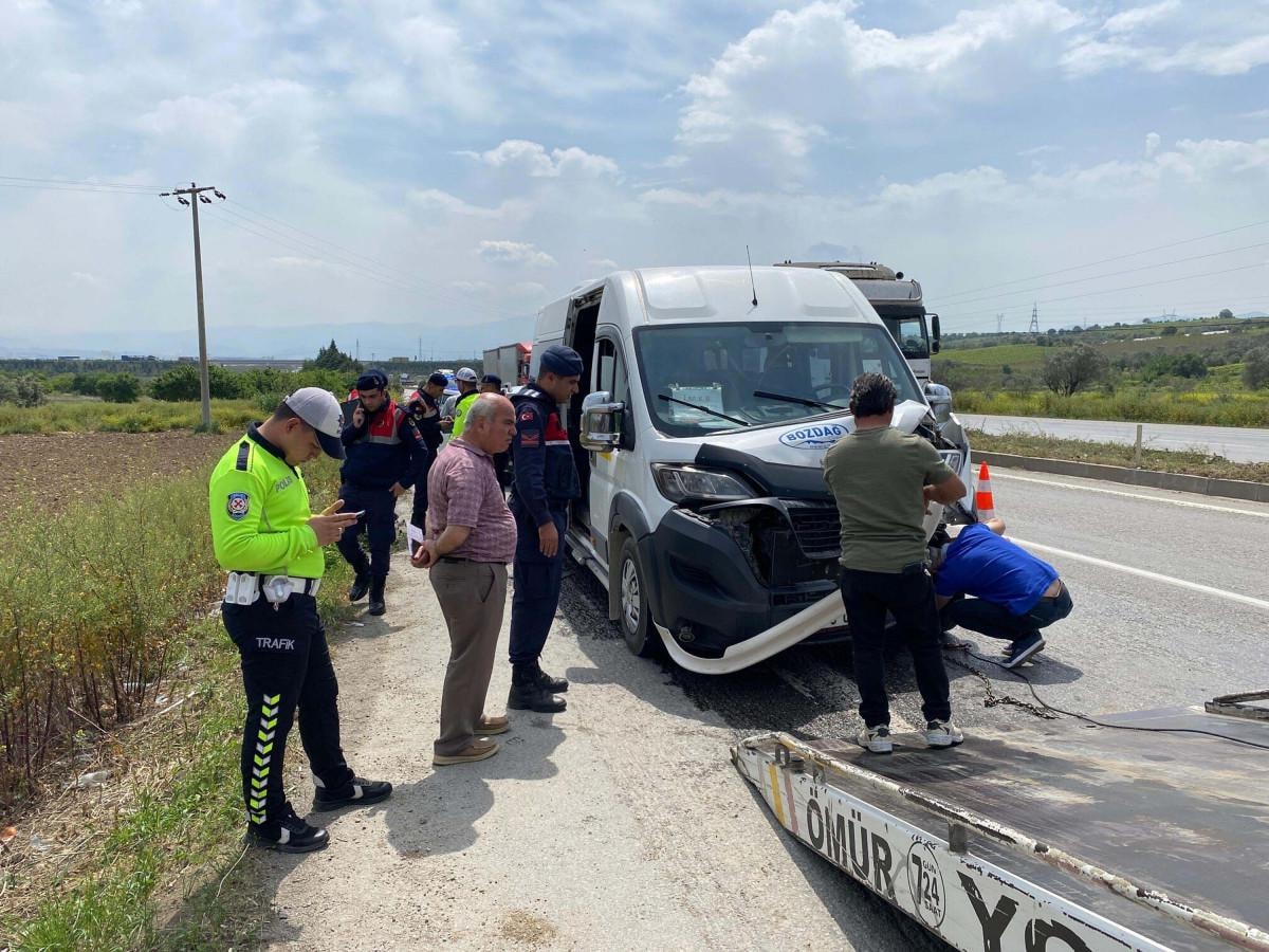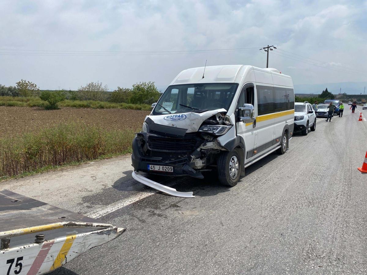 Manisa'nın Turgutlu ilçesinde, Yunusemre Atatürk Ortaokulu öğrencilerini taşıyan Ruhi Çelik yönetimindeki servis minibüsü, aynı okulun öğrencilerini taşıyan ve radar görünce aniden fren yaptığı öne sürülen Tarık Bozdağ'ın kullandığı servis minibüsüne arkadan çarptı.