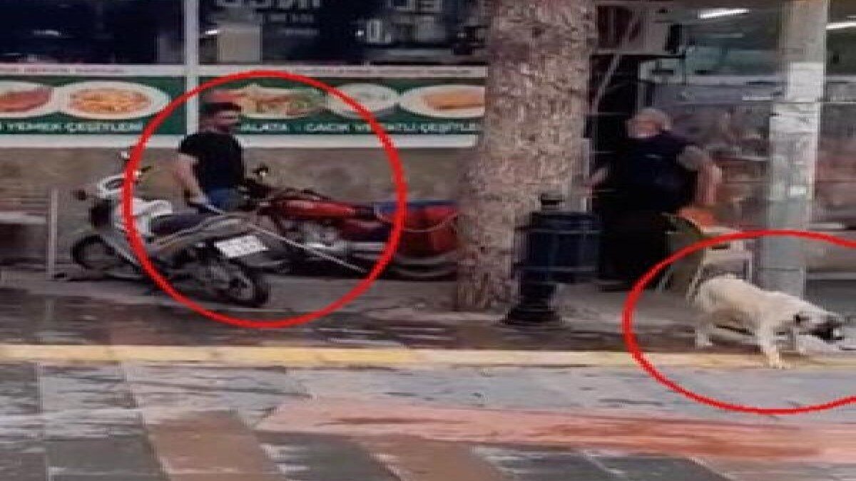 Hüseyin A., daha sonra restoranın önünde park halindeki motosikletlerin arkasına saklanan köpeği, elindeki tahta fırça sapıyla dövdü.