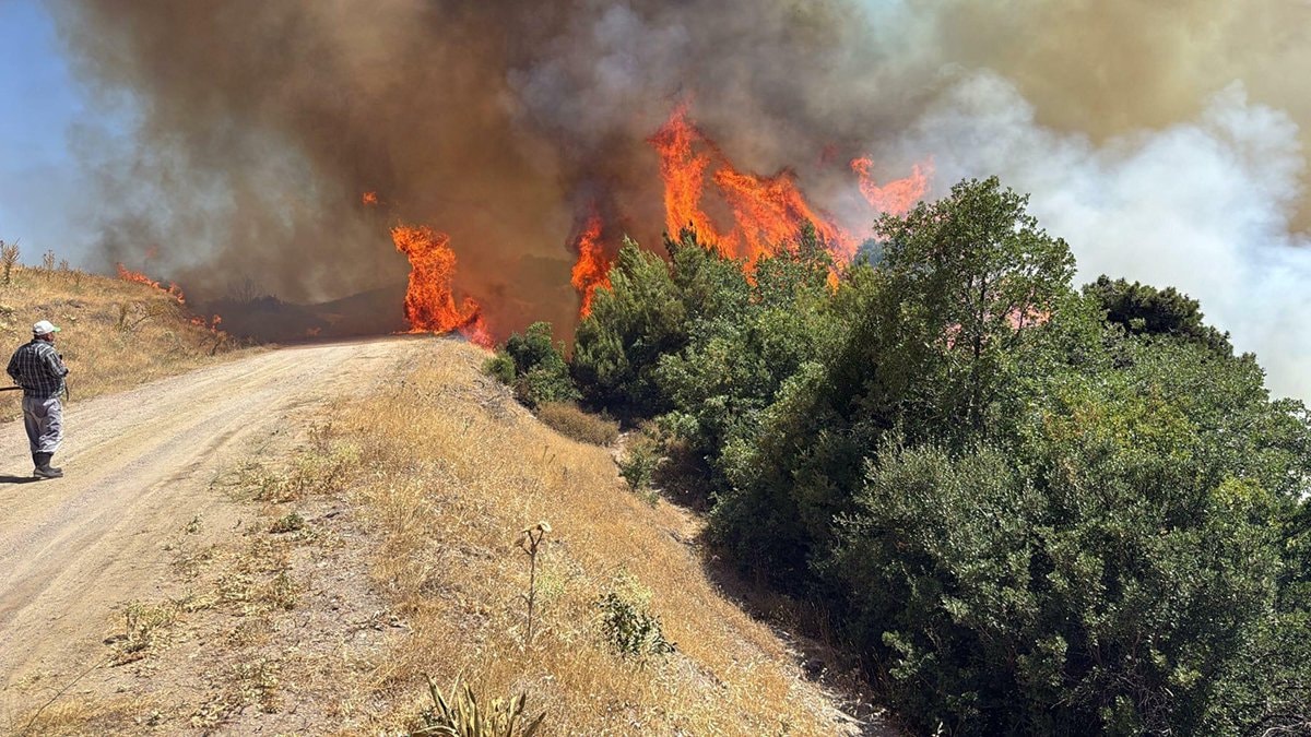 Alevler, rüzgarın etkisiyle geniş bir alana yayıldı.