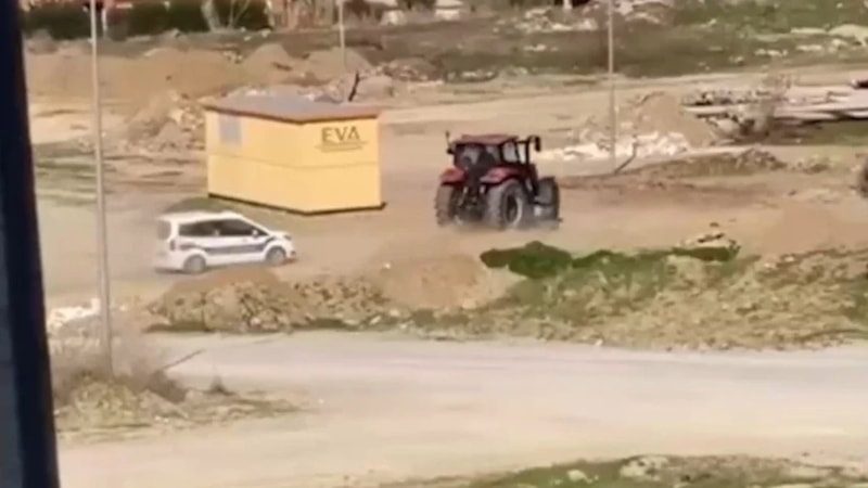 Traktörüyle uzun süre polis ekiplerinden kaçan sürücü, ilçedeki bir vatandaş tarafından cep telefonu kamerasıyla kaydedildi.