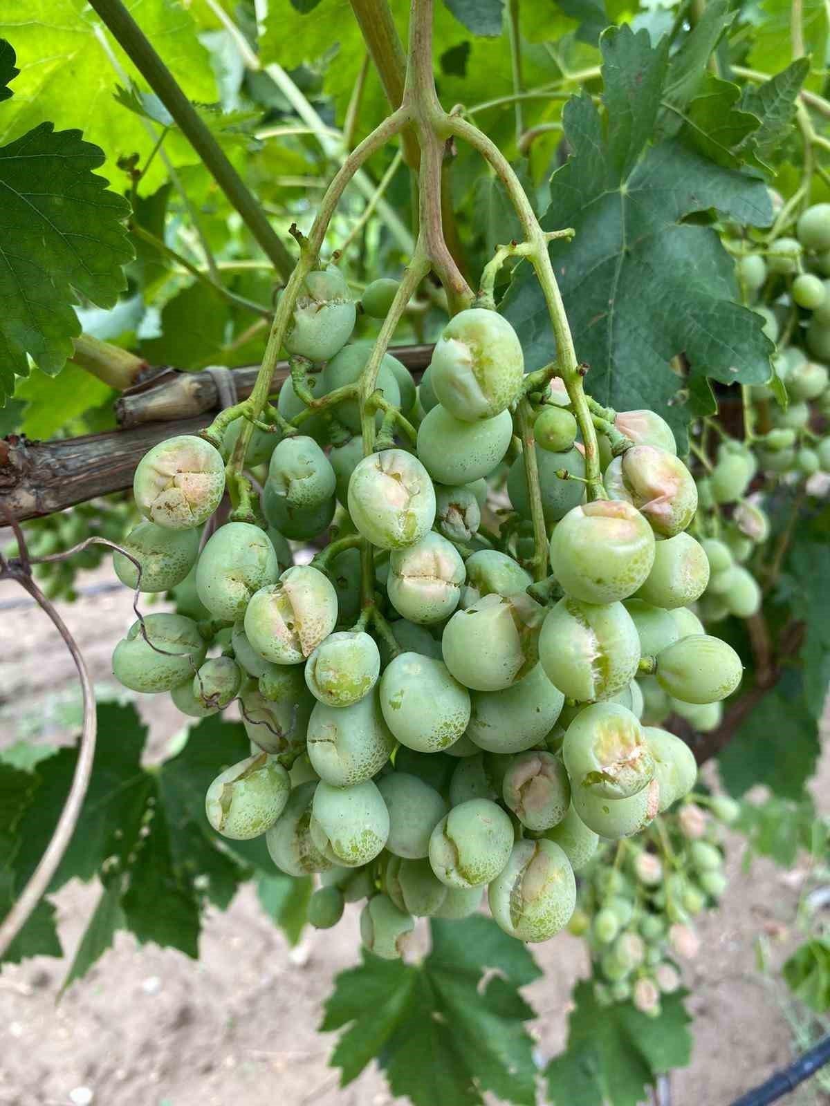 Yaşanan fırtınada üzüm bağlarının üzerindeki örtüleri yırtılırken bazı asmaların devrildiği ve dolu yağışının üzüm tanelerine zarar verildiği görüldü.