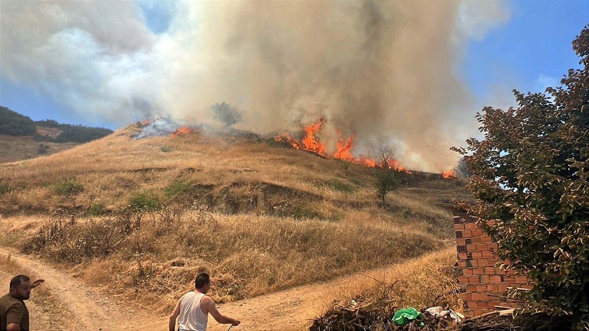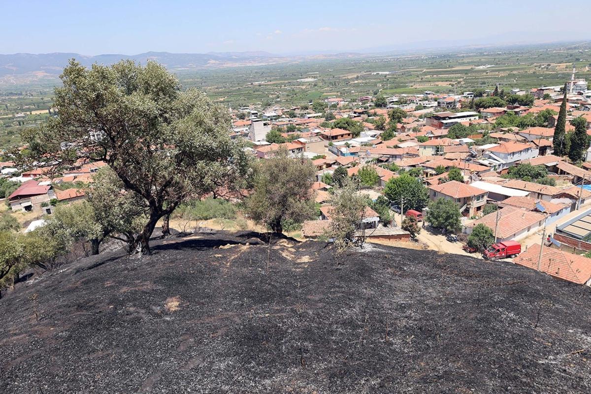 Manisa'nın Turgutlu ilçesine bağlı kırsal Derbent Mahallesi'ndeki yerleşim yerlerine yakın bölgedeki tarım arazisinde saat 13.00 sıralarında henüz belirlenemeyen bir nedenle yangın çıktı.