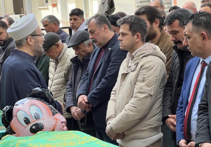 Hayatını kaybeden 15 aylık Vedat Ayaz Şamlı'nın tabutuna en sevdiği çizgi film karakterinin balonu bağlanırken, görenlerin yürekleri dağlandı.