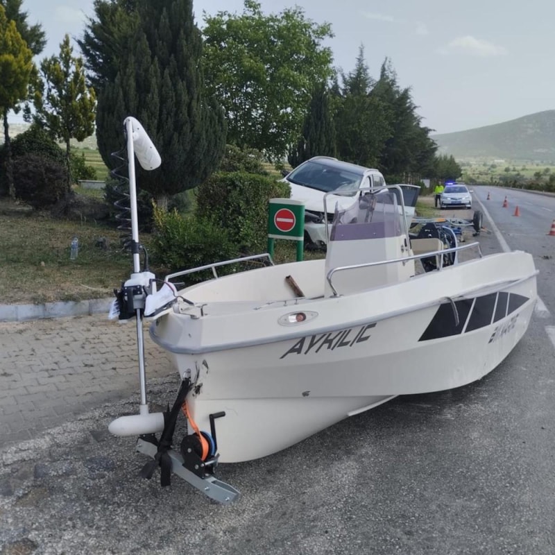 Kazanın etkisiyle otomobile bağlı römork devrildi, tekne yola sürüklendi. İhbar üzerine kaza yerine 112 Acil Sağlık ve jandarma ekipleri sevk edildi.