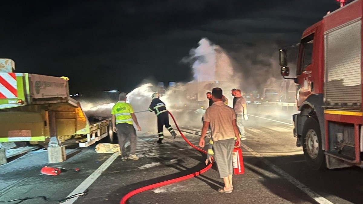 Seyir halindeki tırda çıkan yangın, kara yolunda endişeye neden oldu.