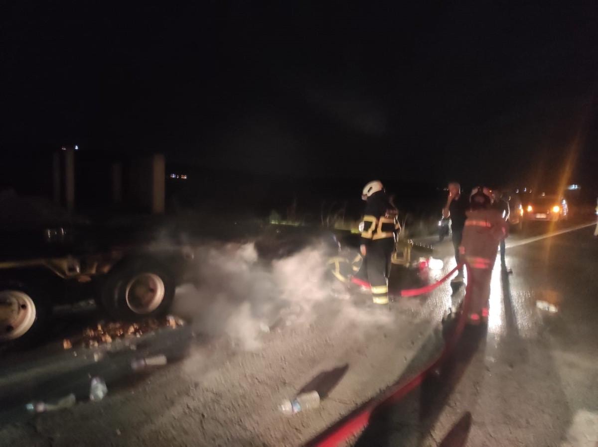 Yangını fark eden tırın sürücü, aracı durdurup durumu 112 Acil Çağrı Merkezi'ne haber verdi.