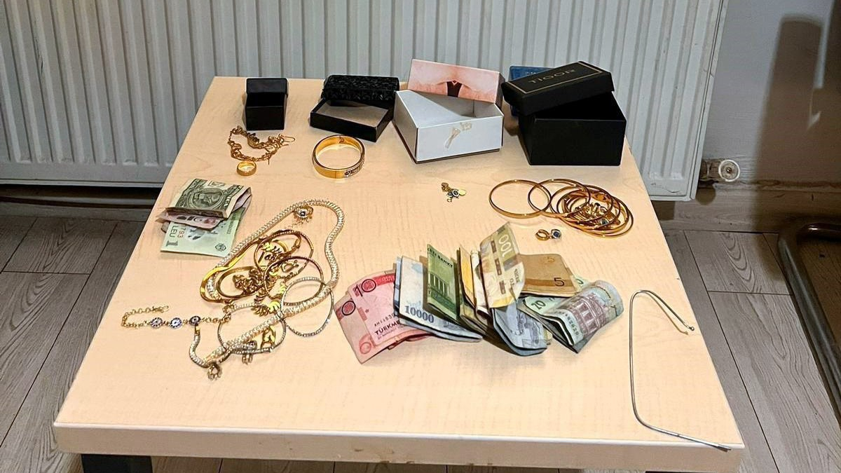 Şüphelilerin üst aramalarında 6 adet bilezik, 2 adet taş işlemeli kolye, 6 adet bileklik, 1 adet kelepçe diye tabir edilen bileklik, 1 adet derya ibareli altın kolye, 1 adet altın zincir kolye, 1 adet altın yüzük, 1 adet altın küpe ve farklı ülkelere ait çeşitli miktarlarda koleksiyonluk kâğıt paralar ele geçirildi.