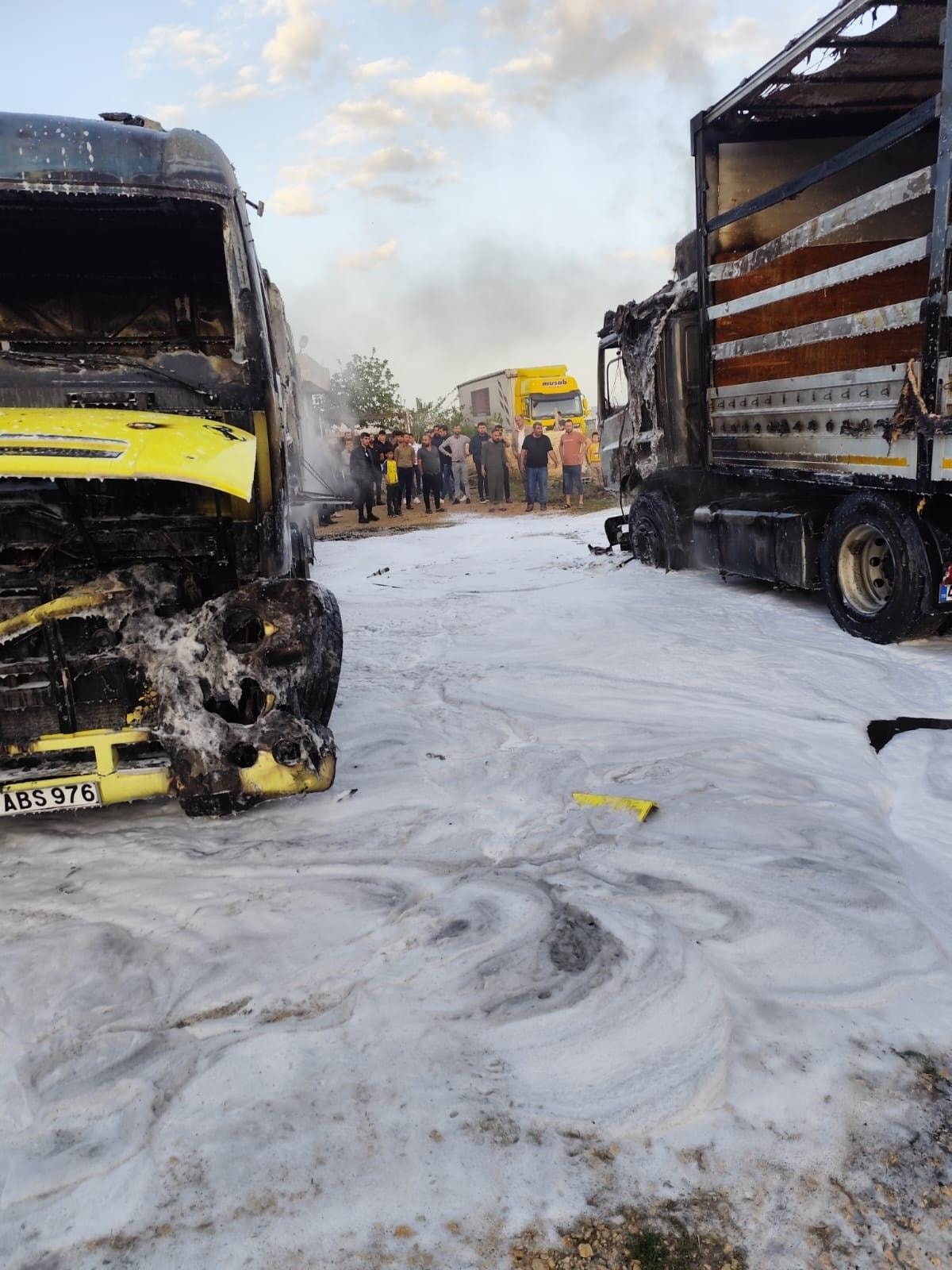 Alevlere teslim olan tırlar itfaiye ekiplerinin müdahalesiyle söndürüldü.