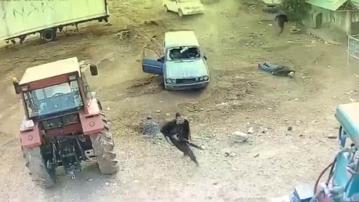 Karşı tarafın da karşılık vermesi ile çıkan çatışmada, bir kişinin kurşunların hedefi olarak yere yığıldığı anlar da görüntülere yansıdı.