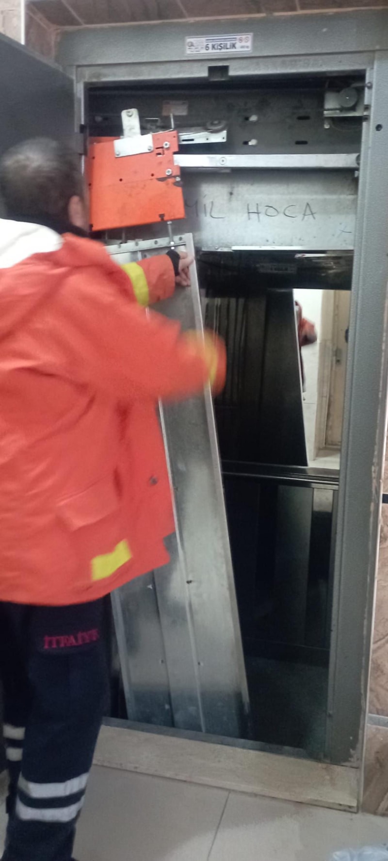 Yaralılar ekiplerin çalışmasıyla asansör kabininden çıkarıldı.