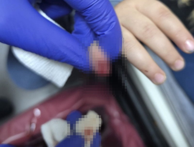 Olayda çocuğun sağ elinin serçe parmağı koptu.