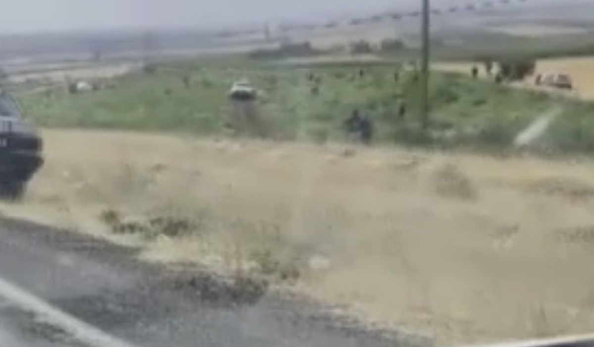 Yoldan geçen bir vatandaş, o anları telefon kamerası ile kaydetti.