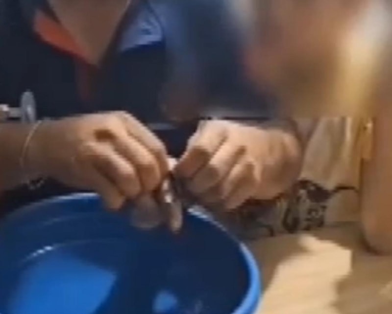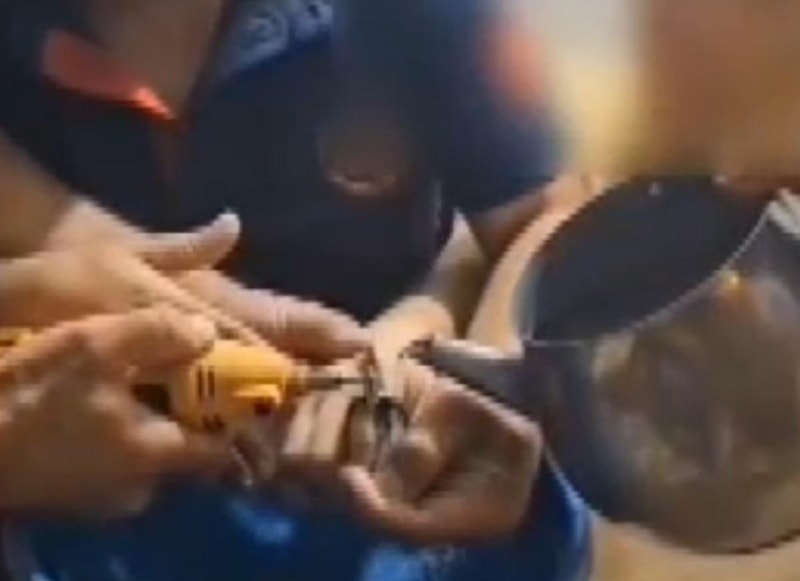 İtfaiye ekipleri özel kesici alet kullanarak vida pulunu dikkatlice kesip çocuğun parmağından çıkardı.