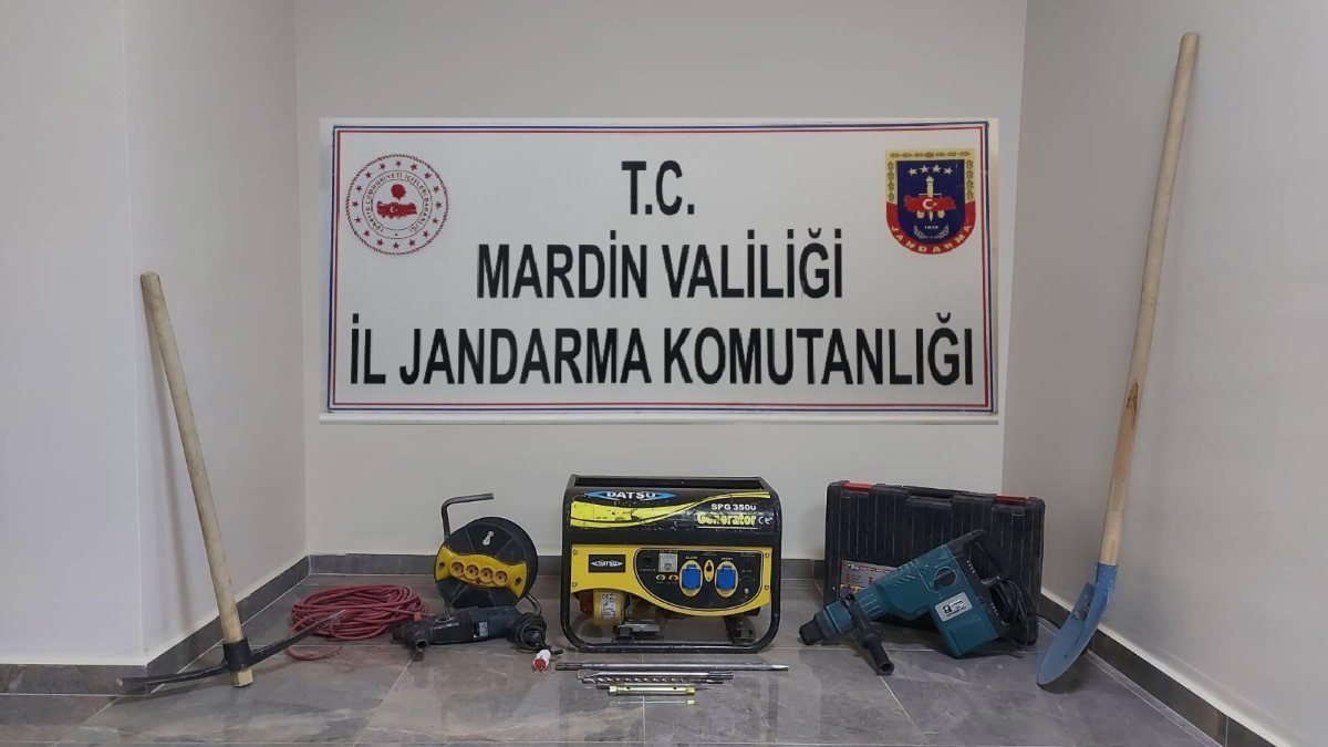 Mardin’de Artuklu İlçe Jandarma Komutanlığı ekipleri, Artuklu ilçesi Avcılar Mahallesi'nde bulunan Kibartepe mevkisinde izinsiz kazı yapıldığını tespit etti.