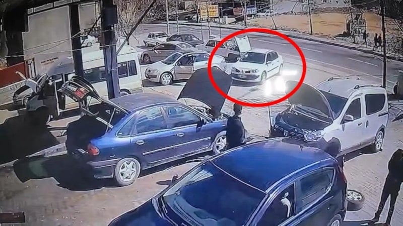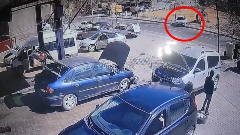 Mardin'in Mazıdağı ilçe merkezinde bulunan bir oto tamirci dükkanının önüne tamir amacıyla park edilen otomobil, iddiaya göre sürücüsünün el frenini çekmemesi nedeniyle bir süre sonra kendiliğinden hareket etti.