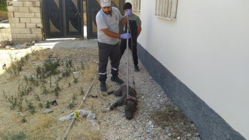 İhbarla bölgeye giden Kızıltepe Belediyesi Sağlık İşleri Müdürlüğü ekipleri, köpeği yakalayarak mobil geçici hayvan bakımevine götürdü.
