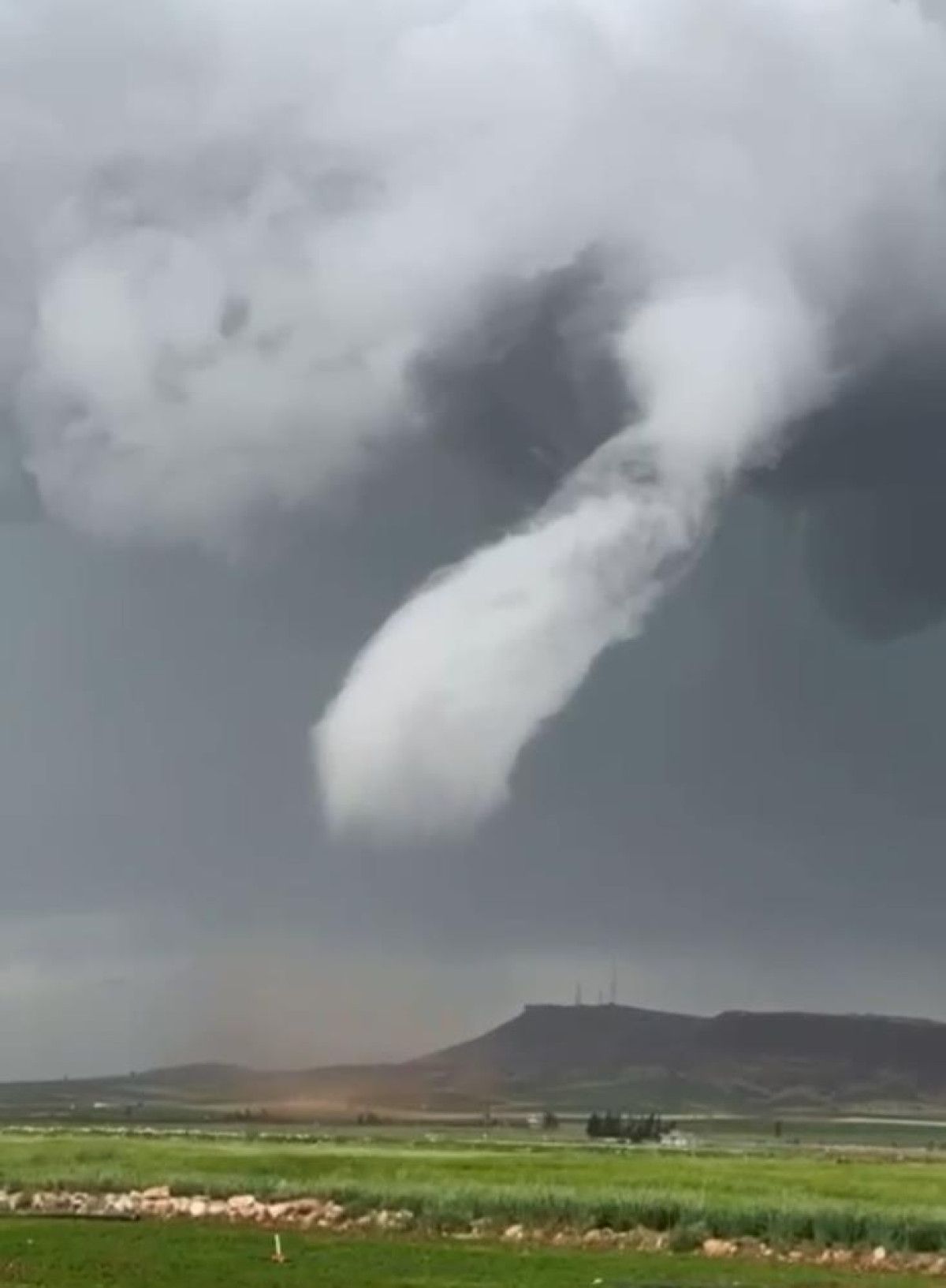 Mardin'in Mazıdağı ilçesinde metrelerce yükseklikte bir hortum oluştu.