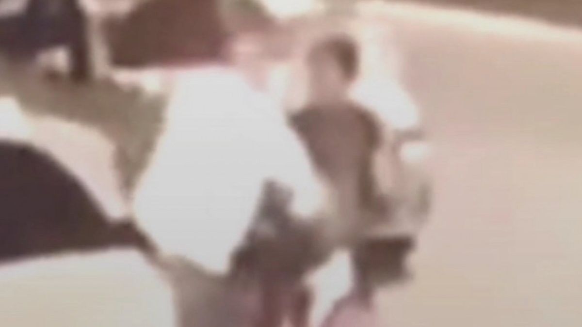 İsimleri öğrenilemeyen çocukların yanına gelen 2 kişiden 1'i, henüz bilinmeyen sebeple çocuklardan 1'ine tokat attı.