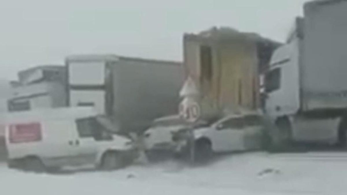 İpekyolu’nun 5. kilometresinde kayganlaşan yolda 5 tır, 2 otomobil ve 1 otobüsü birbirine girdi.