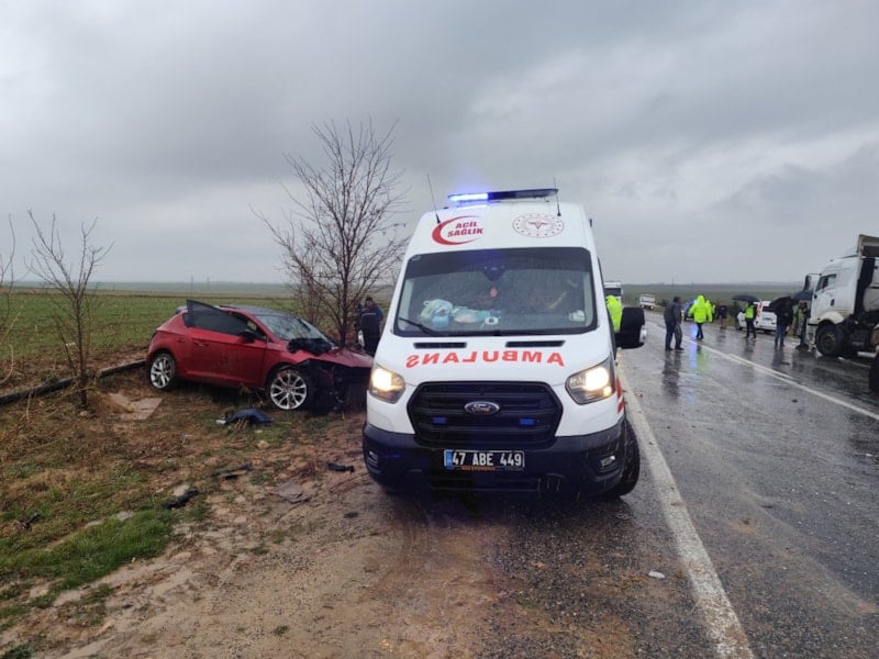 Mardin'in Artuklu ilçesi kırsal Akıncı Mahallesi yakınlarında, sürücülerin isimleri öğrenilemeyen otomobil ile tır çarpıştı.
