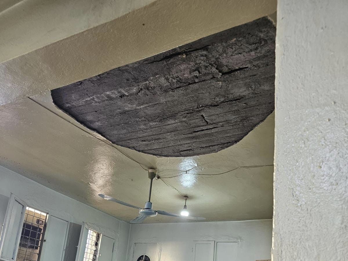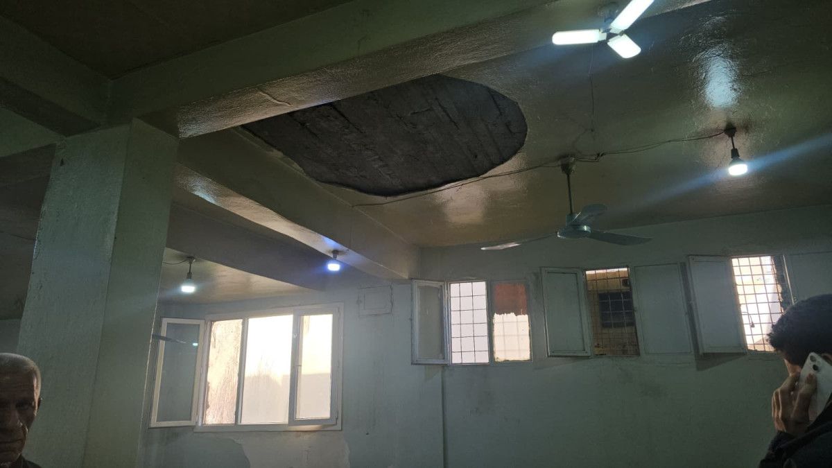 Mardin'in Nusaybin ilçesinde bulunan ve eski yapı olduğu belirtilen kıraathanenin tavanındaki sıva parçaları, içeride masada oturan müşterilerin üzerine düştü.