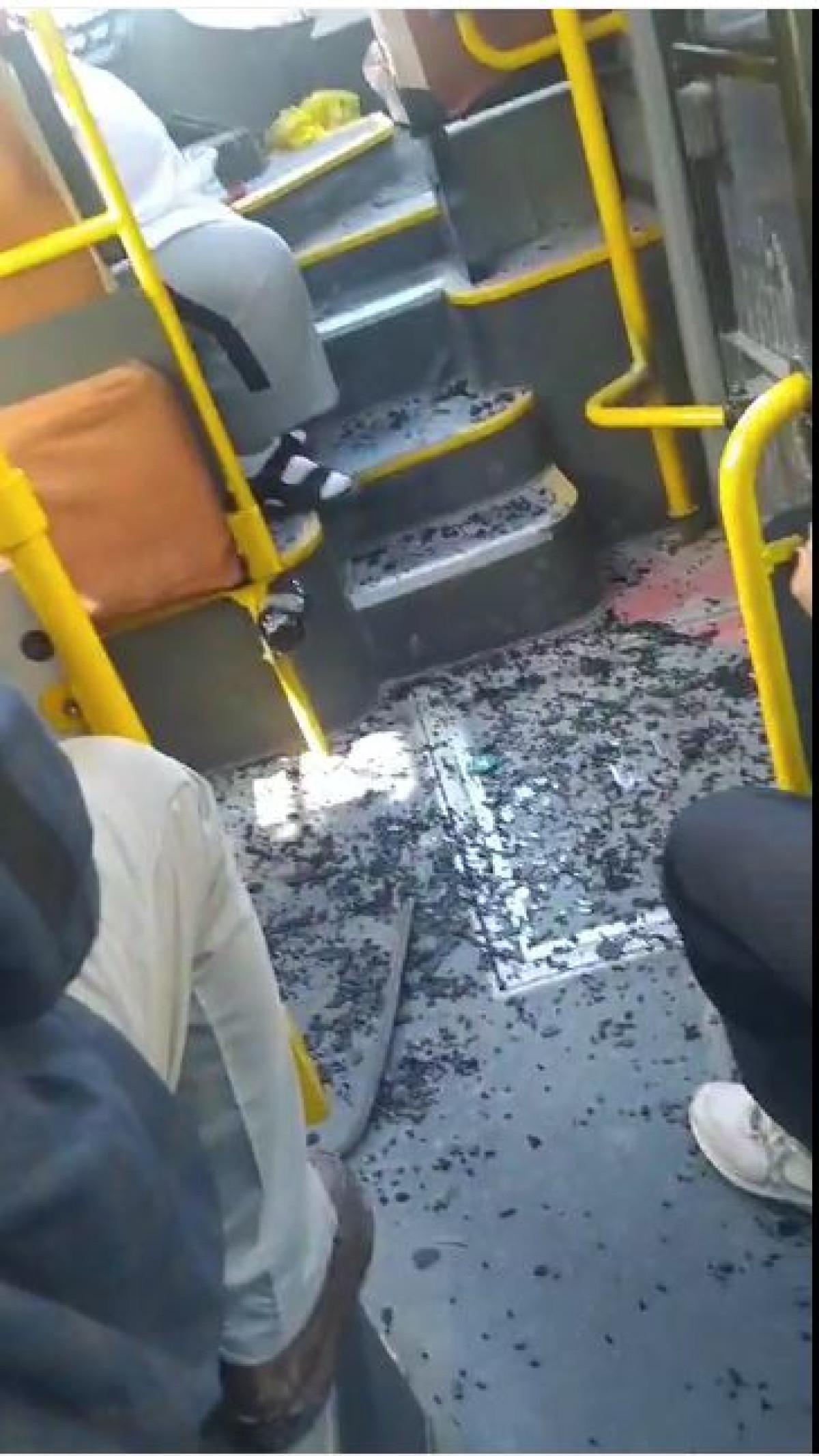 Çocukların attığı taşlar, şehir içi minibüsün tavanındaki havalandırma camına isabet etti.