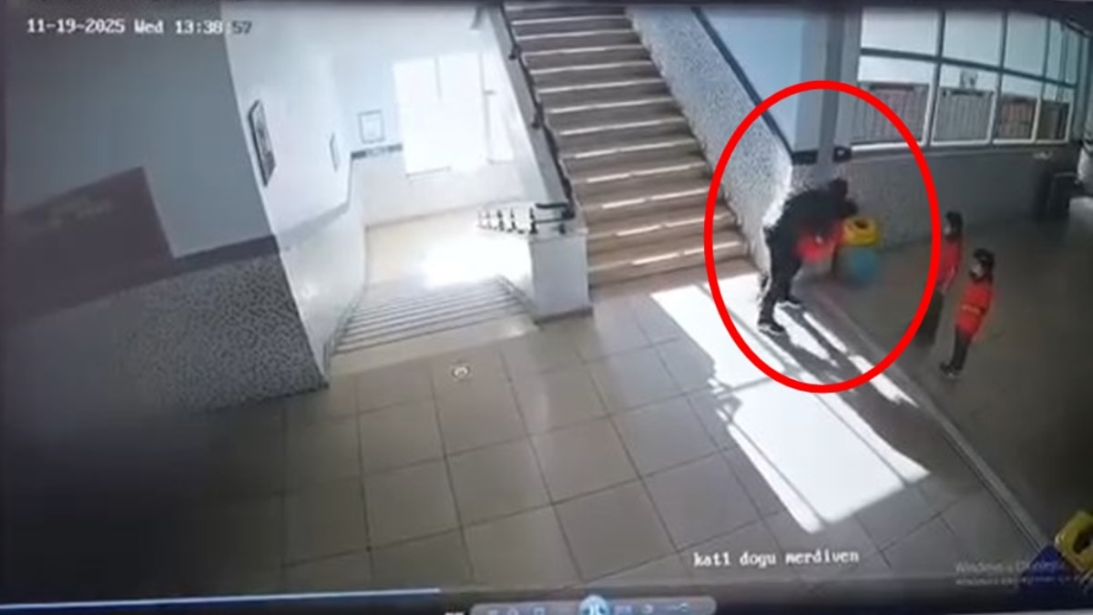 O anlar, okulun güvenlik kamerasına yansıdı.