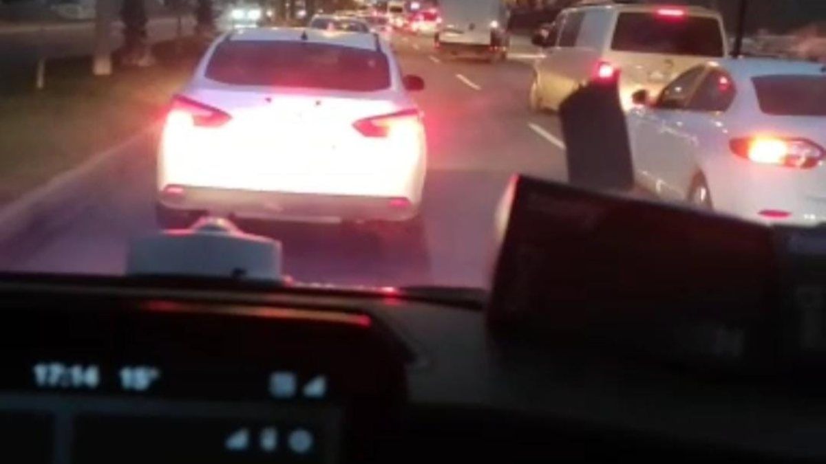 İHA'nın haberine göre; sürücü, sağ şerit açık olmasına rağmen sürücüye yol vermedi.