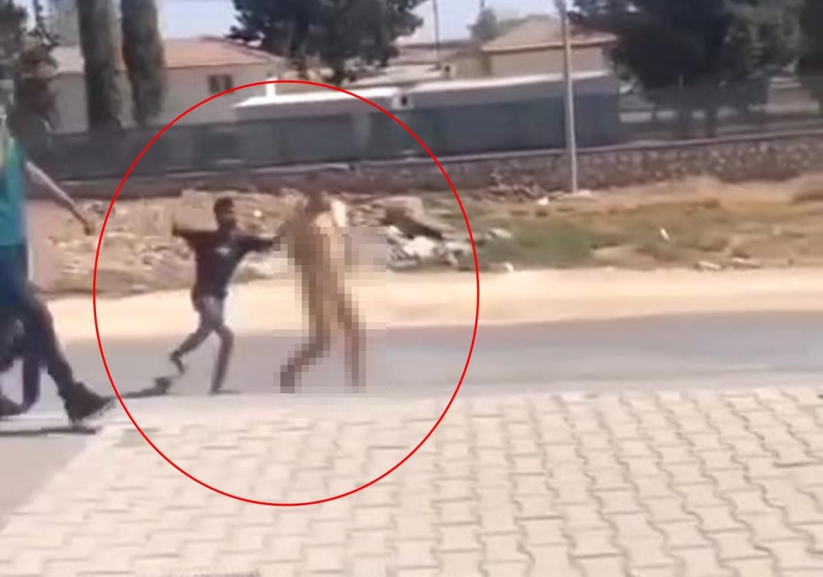 Daha sonra çıplak dolaşan adamı tekme tokat döven şahıslar, çağırdıkları polis ekiplerine teslim etti.