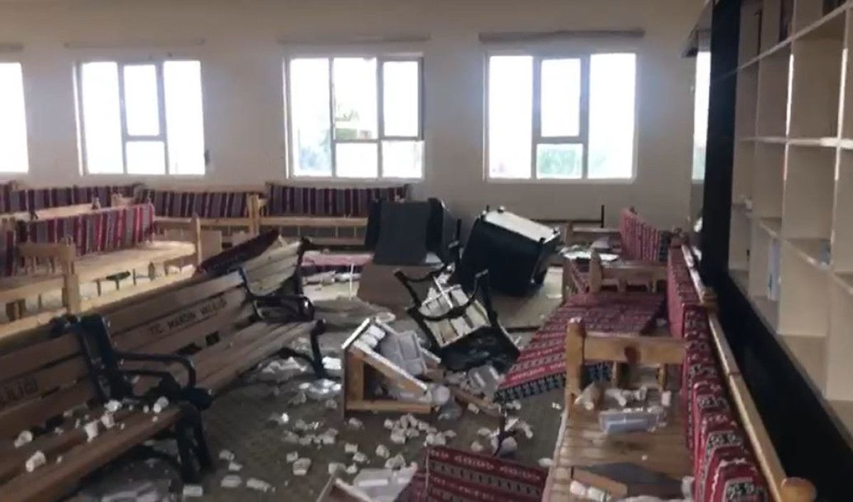 Mardin'in Artuklu ilçesi Dara Mahallesi'ndeki taziye evinin camlarını kırarak içeriye giren kişiler sedir ve masalara zarar verdi.