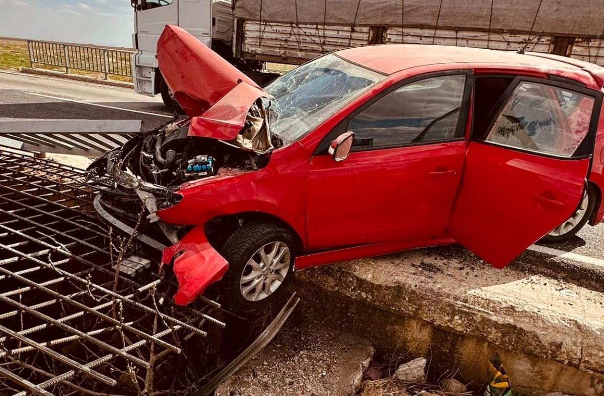 Sürücünün direksiyon hakimiyetini kaybettiği otomobil, yol kenarındaki köprü bariyerine çarptı.