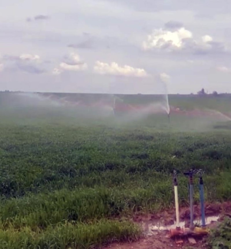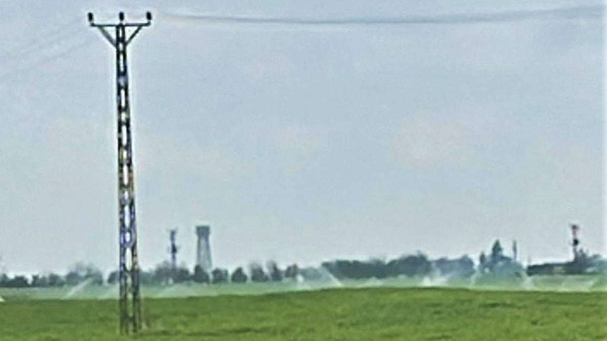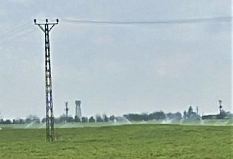 Elektrik dağıtım ekipler, bölgede devam eden ve zaman zaman şiddetini artıran yağışlara rağmen, bir tarlanın 'yağmurlama' yöntemiyle sulandığını fark etti.