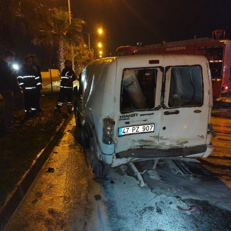 Mardin'de 4 aracın karıştığı zincirleme kazanın ardından hafif ticari araç yandı. İtfaiye ekiplerinin müdahalesiyle yangın söndürülürken yaralanan 1 kişi hastaneye kaldırıldı.