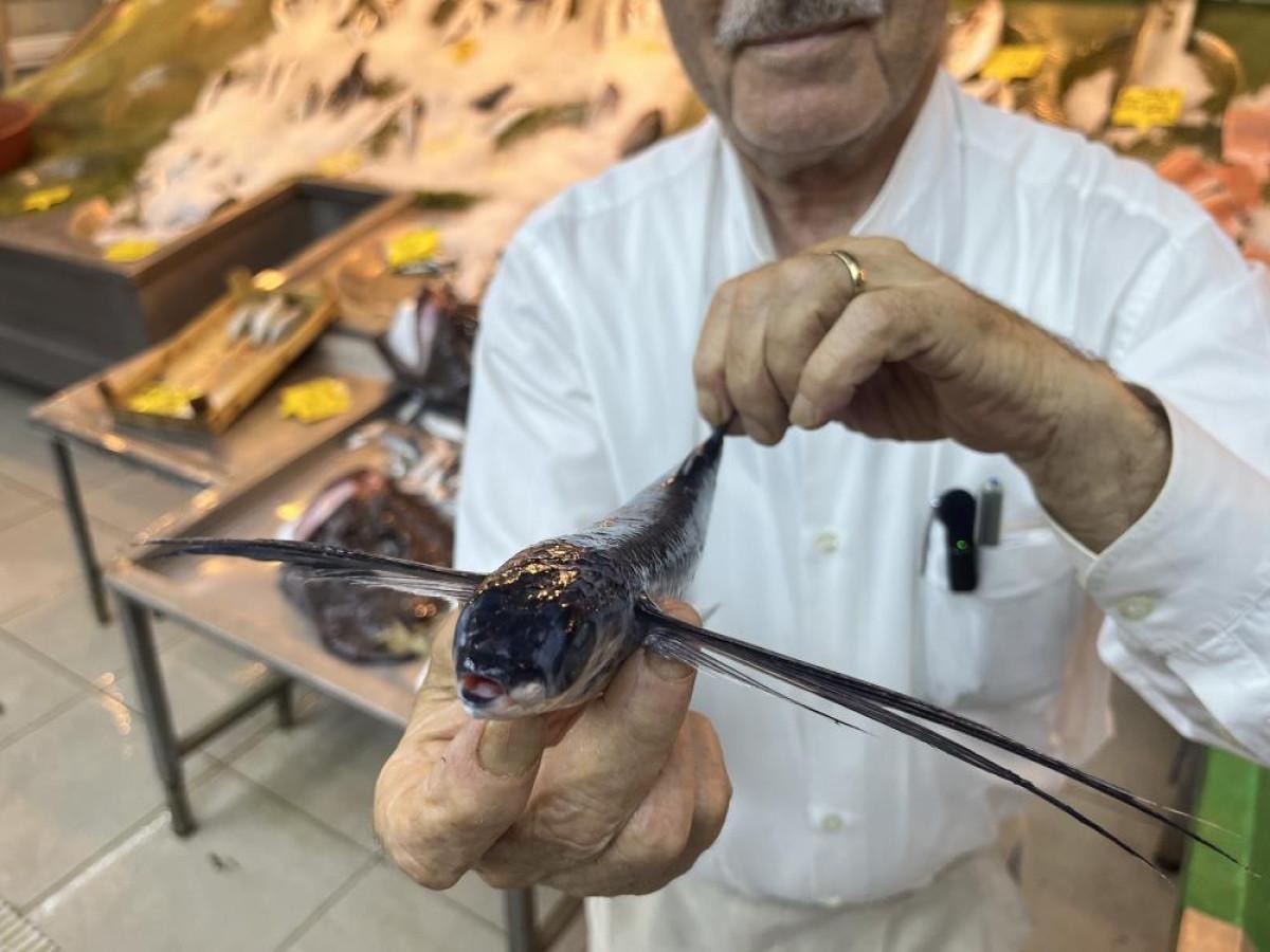 Uçan balığı ilk kez görenler balığı inceledi.