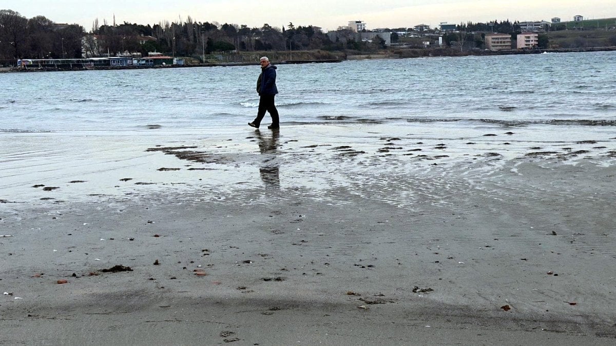 Tekirdağ'ın Marmaraereğlisi Sahili'nde Marmara Denizi, kıyıdan yaklaşık 50 metre çekildi.