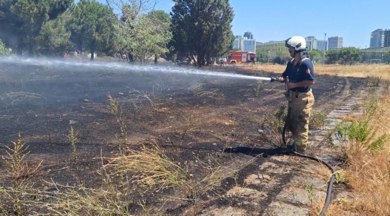 Kartal'da bulunan Marmara Üniversitesi Mehmet Genç Külliyesi'nin içinde otların olduğu alanda yangın çıktı.