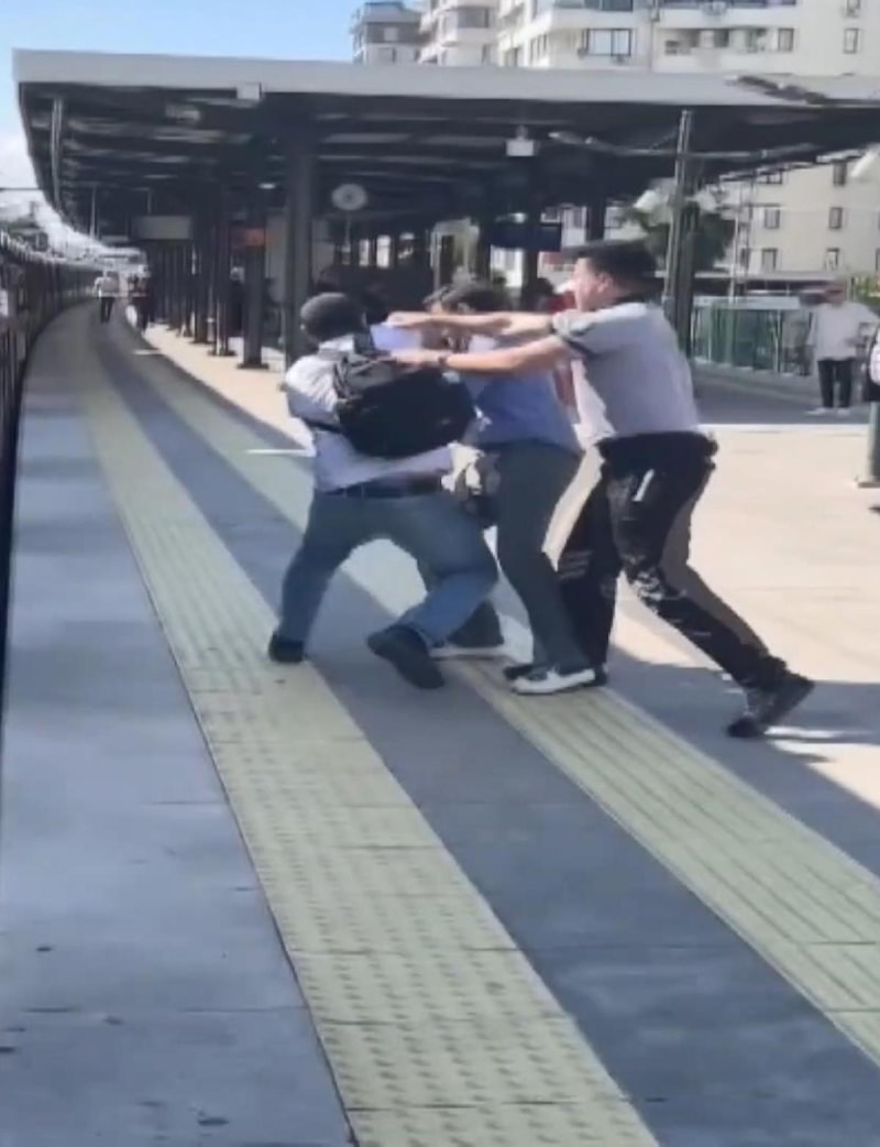 Trenin durağa yanaşmasıyla inen taraflar tartışmaya istasyonda da devam etti. Yaşanan olayda korkan çocuklar ise duraktaki kadın yolcular tarafından sakinleştirilmeye çalışıldı. Olay sonrası gözaltına alınan Ekrem Dur ve İbrahim A., ifadeleri alınmak üzere emniyete götürüldü.
