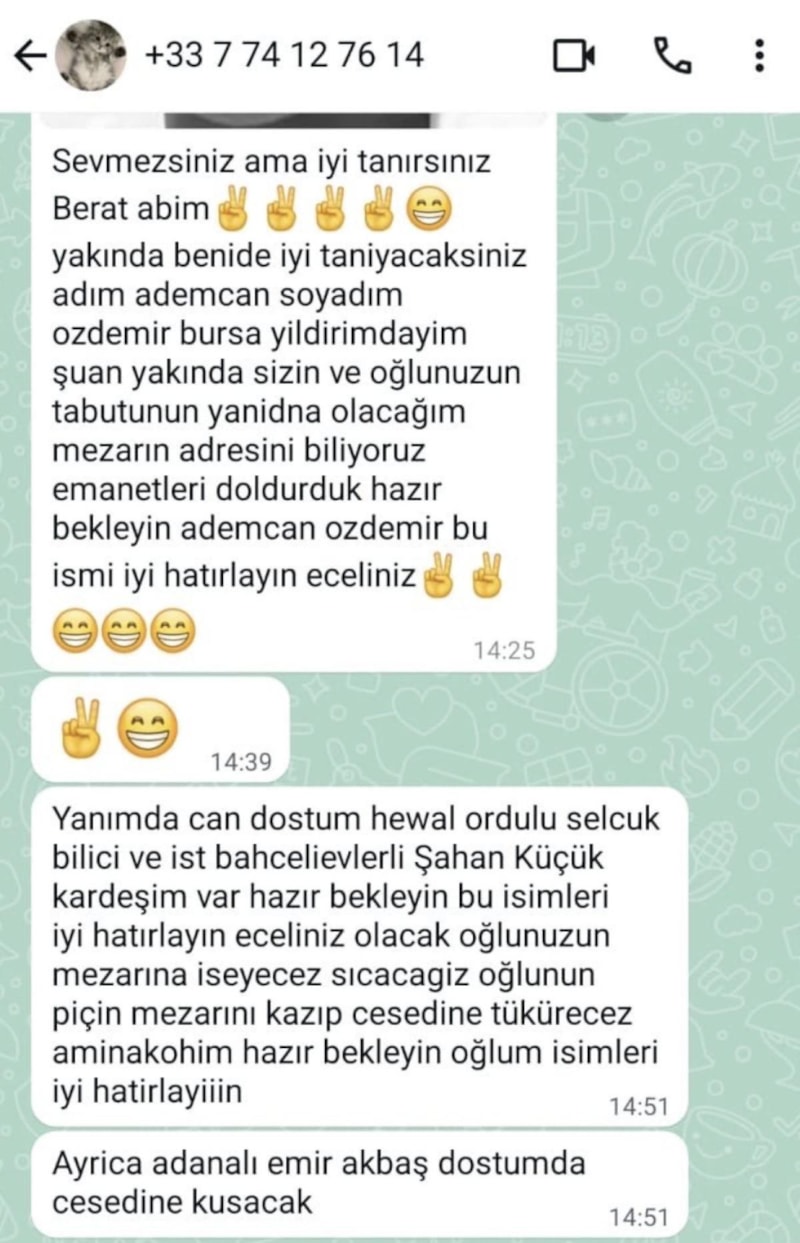 Mattia Ahmet Minguzzi'nin annesinin telefonuna gelen tehdit mesajlarından bazıları ise şu şekilde: