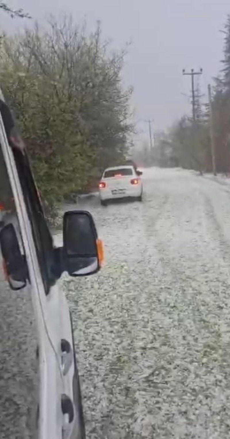 Dolu yağışıyla birlikte kayganlaşan yollarda araçlar ilerlemekte güçlük çekti.