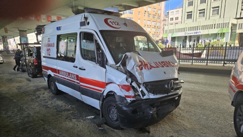 Mecidiyeköy'de dönülmemesi gereken yerden 'U' dönüşü yapan minibüsle hastaneye yetişmek için kırmızı ışıkta geçen ambulans çarpıştı.