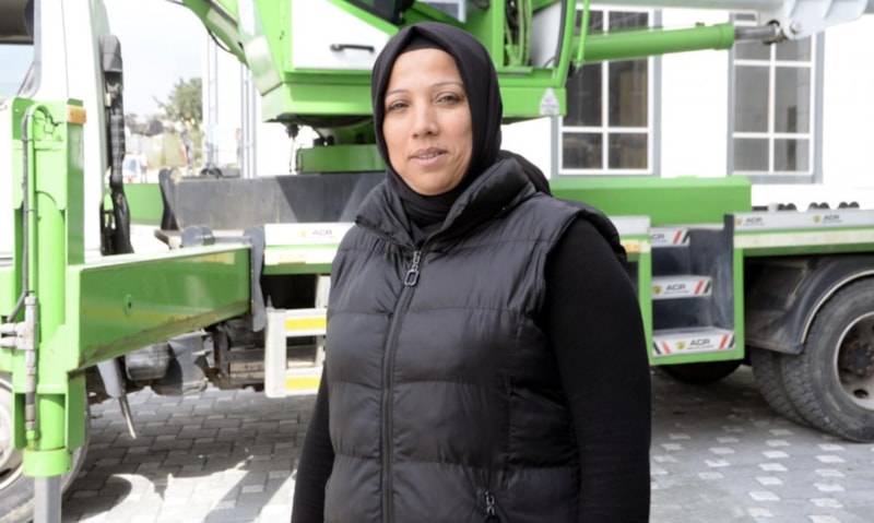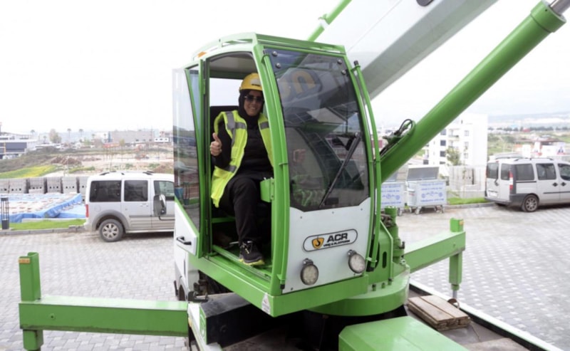 Patronunun sektörde kadınları da istihdam etmek için başlattığı projeye dahil olan Mafer, çevresinin ön yargılı olmasına rağmen vinç operatörlüğü eğitimi görüp, sertifika aldı.