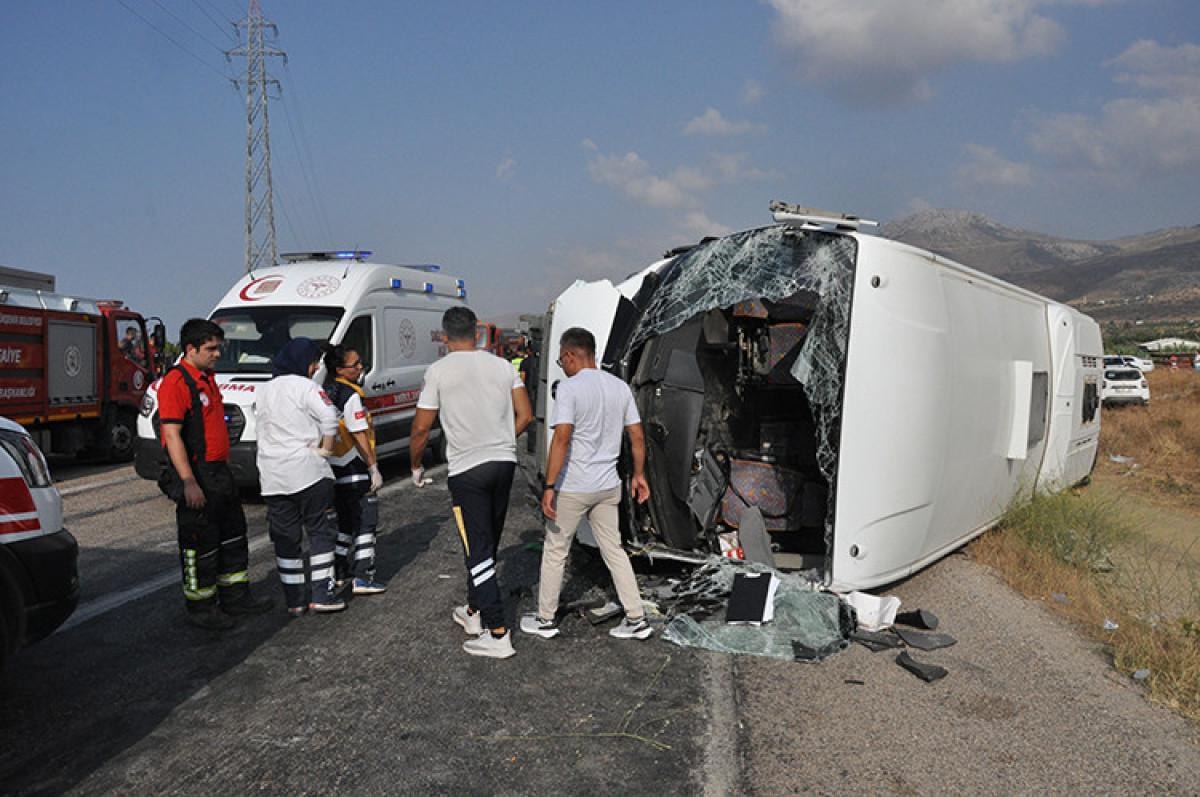 İ.K. (65) idaresindeki 06 EEP 718 plakalı Akkuyu NGS'de çalışan işçileri taşıyan servis otobüsü, Işıklı Mahallesi D400 kara yolunda Antalya istikametinden Mersin yönüne seyrederken refüje çıkarak karşı şeride geçti.