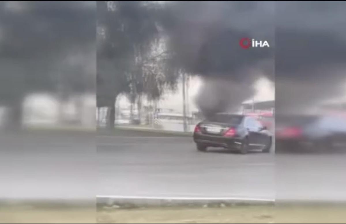 Alevler büyürken sürücü, bir süre yoluna devam etti.