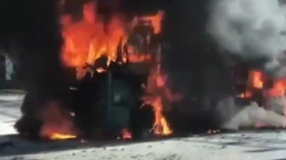 Dumanlar şehrin birçok noktasından görülürken, minibüste ara ara patlamalar oldu.