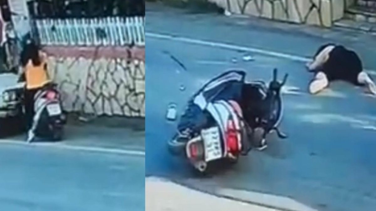 MOTOSİKLETLİ KIZA ÇARPIP, ÜZERİNDEN GEÇTİ