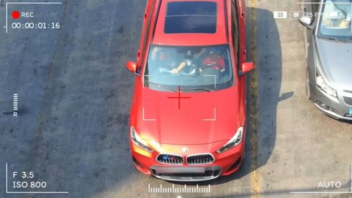 O anları havadan görüntüleyen polis, otomobili uygulama noktasında durdurdu.