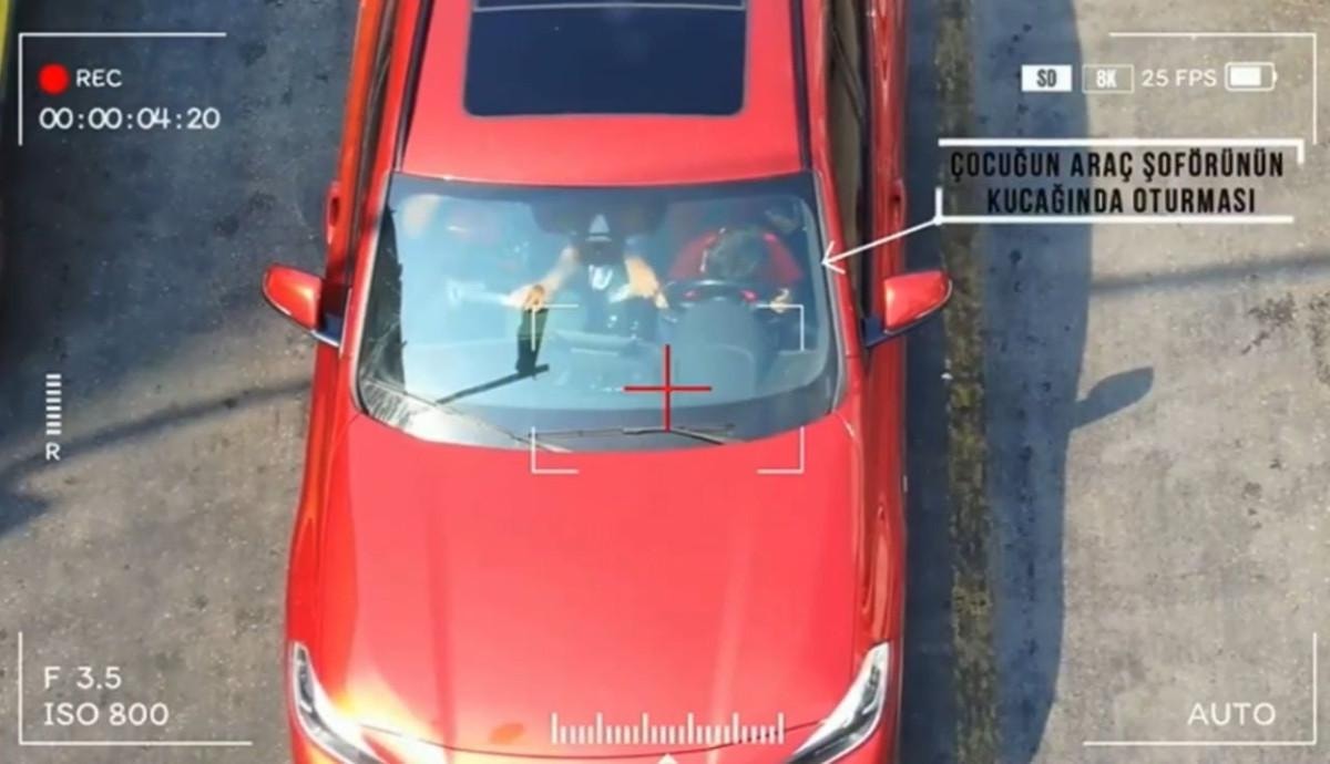 Son olarak araç geçişinin yoğun olduğu merkez Mezitli ilçesi GMK Bulvarı Kale Kavşağında drone ile denetim yapan ekipler, çocuk sürücüyü tespit etti.