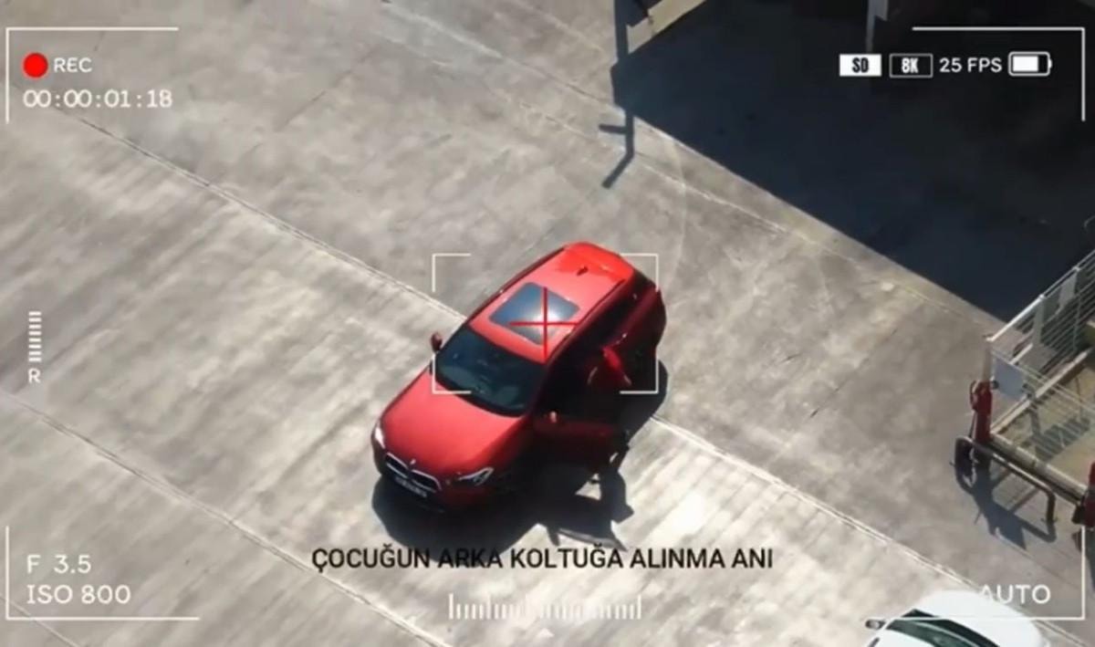 Dronu fark eden araçtakiler, bir petrol istasyonuna çektikleri araçta sürücüyü değiştirip tekrar yoluna devam etti.